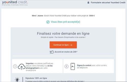 Cliquez sur SOUSCRIRE EN LIGNE dans l'email "Votre demande de financement sur Younited a été pré-acceptée